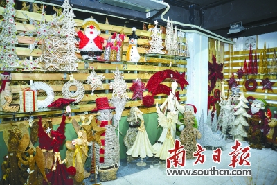 在錦芳工藝有限公司記者看到,琳瑯滿目的國外節(jié)慶產(chǎn)品擺滿了整個(gè)屋子。大小不一的圣誕樹、憨態(tài)可掬的小熊小狗、有趣的蝙蝠蜘蛛、喜慶的南瓜燈籠等等,多種多樣的創(chuàng)意形象讓人眼前一亮。